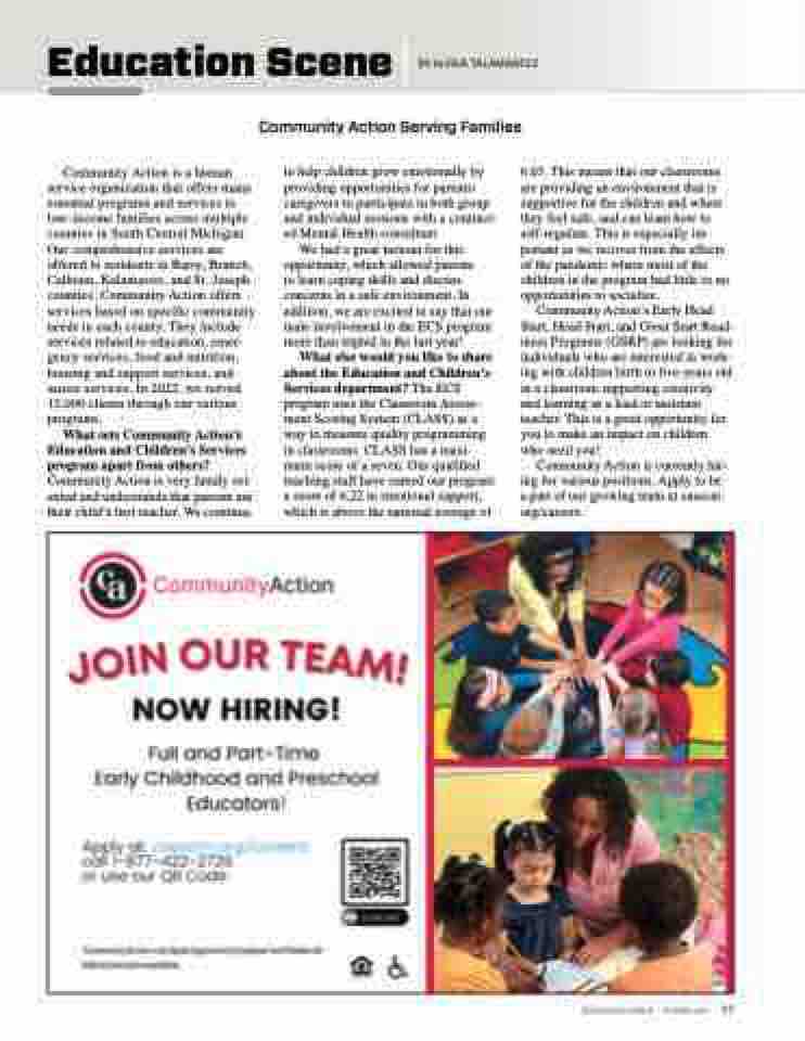 Community Action’s Early Head Start, Head Start, and Great Start Read- iness Programs (GSRP) are looking for individuals who are interested in work- ing with children birth to five-years old in a classroom supporting creativity and learning as a lead or assistant teacher. This is a great opportunity for you to make an impact on children who need you!