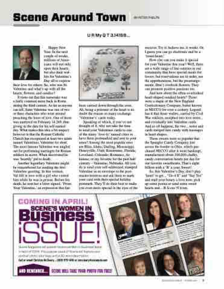 These sweets were so popular that the Spangler Candy Company just across the border in Ohio, which pur- chased NECCO after it went bankrupt, manufactures about 100,000 chalky, candy conversation hearts per day for our favorite sweethearts. That’s eight billion with a ‘B’ a year. Sweet!